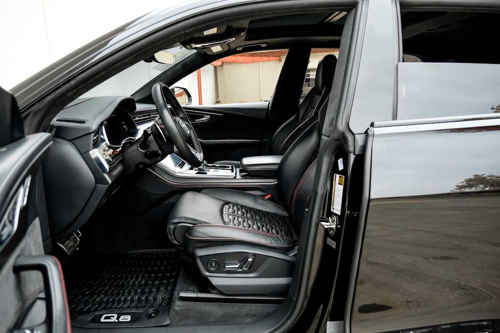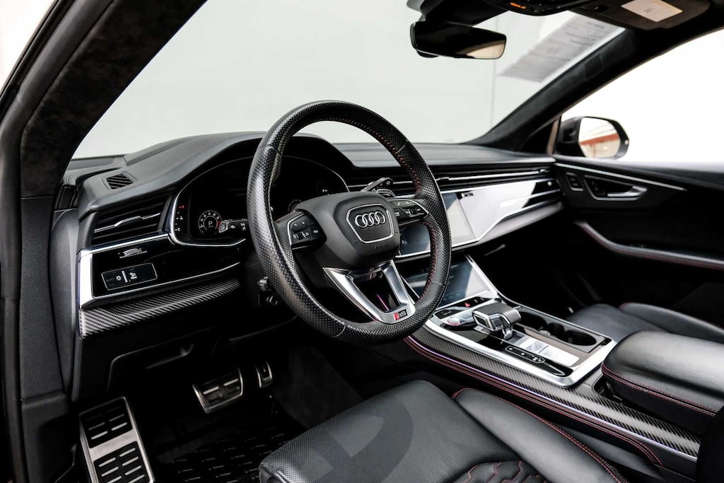 Leather Seats, Navigation, Sunroof, Panoramic Roof, All Wheel Drive Non-Smoker vehicle Audi RS Q8 with Orca Black Metallic exterior and Black w/Black Stitching interior features a 8 Cylinder Engine with 591 HP at 6000 RPM*.
