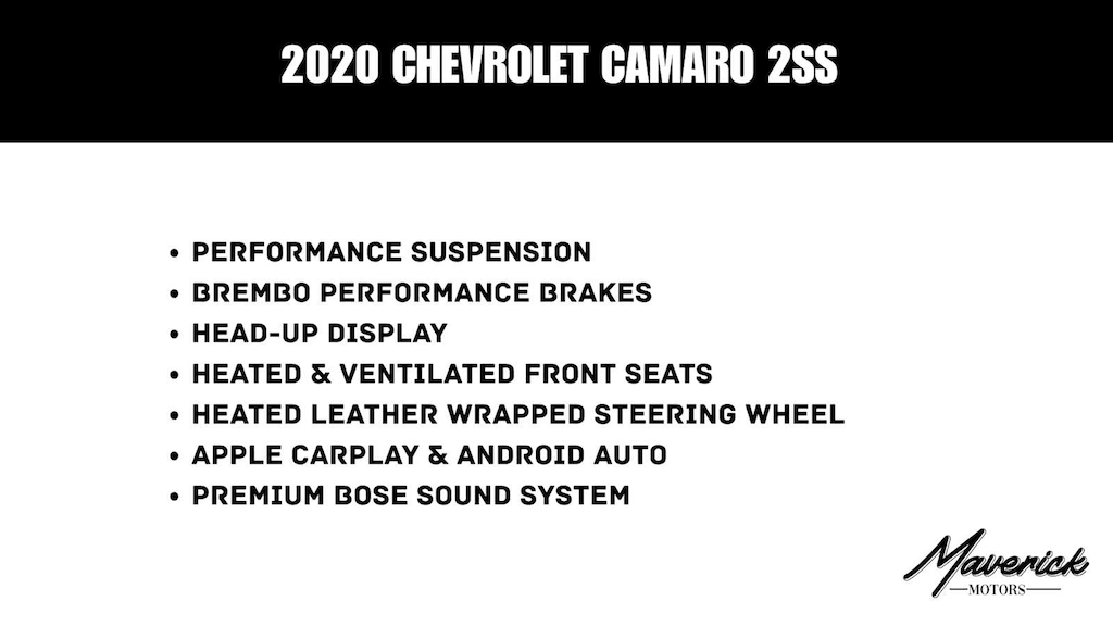 Excellent Condition. 2SS trim. Heated/Cooled Leather Seats, Nav System, Premium Sound System, Back-Up Camera, Aluminum Wheels, TRANSMISSION, 10-SPEED AUTOMATIC, ENGINE, 6.2L (376 CI) V8 DI, VVT, AUDIO SYSTEM, CHEVROLET INFOTAINMENT..