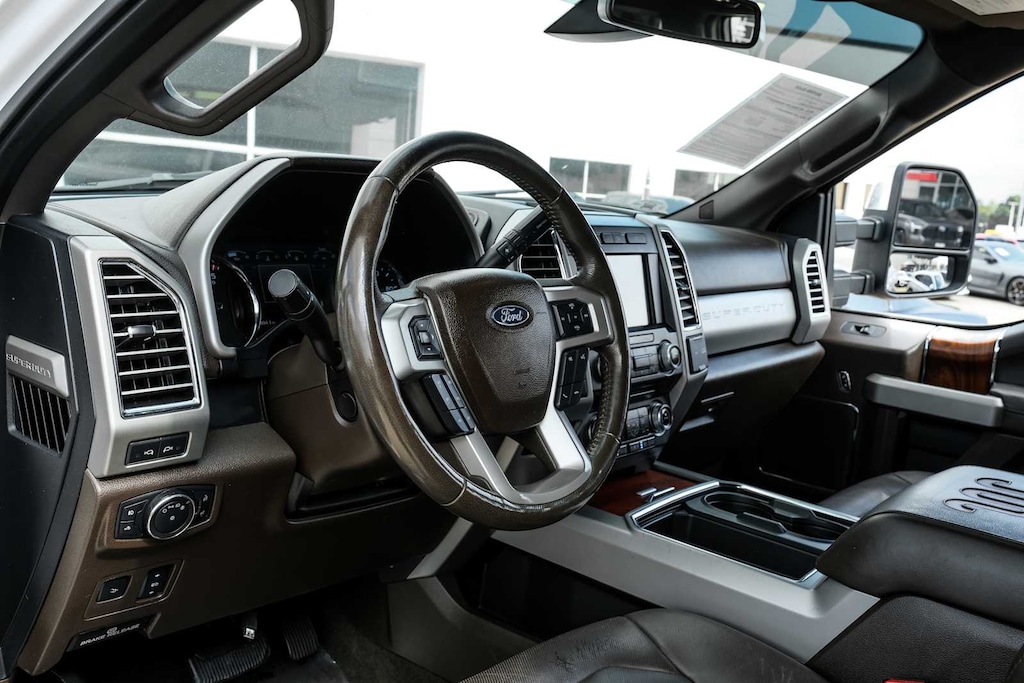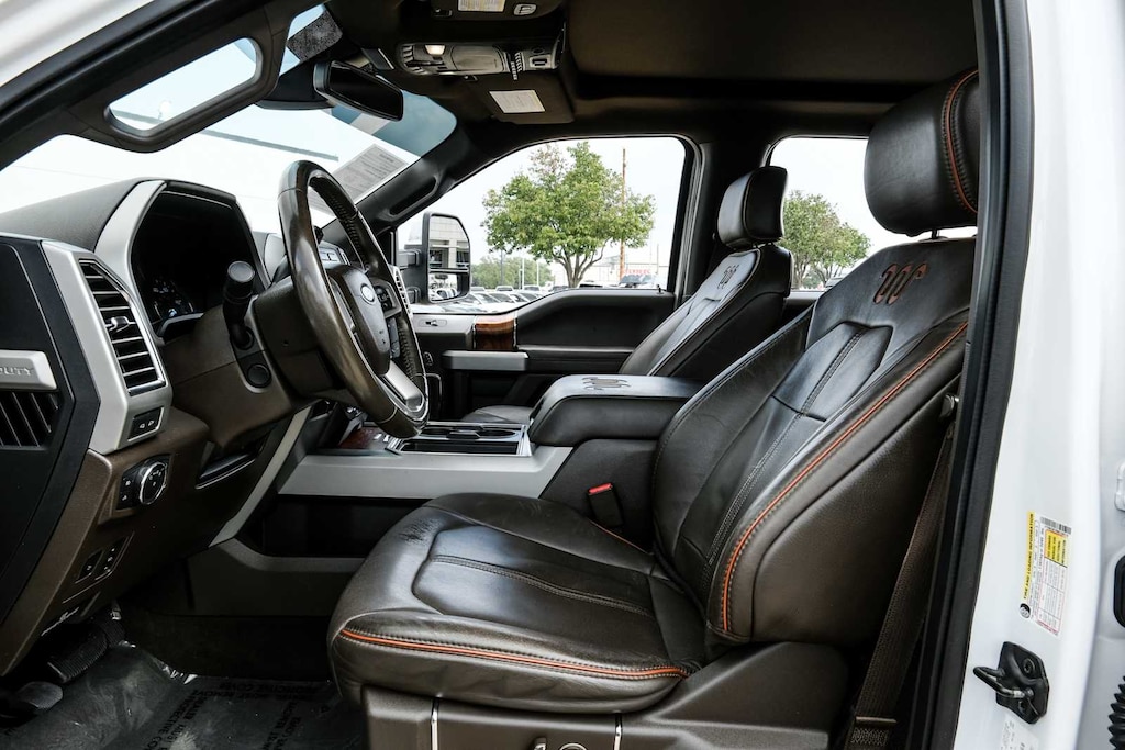 ENGINE: 6.7L POWER STROKE V8 TURBO DIESEL B20 4 valve OHV, manual push-button engine-exhaust braking and intelligent oil-life monitor, 48 Gallon Fuel Tank, Extra Heavy-Duty 220 Amp Alternator, GVWR: 11,500 lb Payload Package, 3.31 Axle Ratio, Dual 78-AH 750 CCA Batteries, KING RANCH ULTIMATE PACKAGE Twin Panel Power Moonroof, map lights and moonroof switches, Blind Spot Information System (BLIS), cross-traffic alert and trailer tow (BLIS sensor in taillamp), Tailgate Step & Handle, Quad Beam LED Headlamps & LED Taillamps, LED fog lamps and LED Center High-Mounted Stop Lamp (CHMSL), Power-Deployable Running Boards, Multi-Contour Seats, CHROME PACKAGE Unique Chrome Mirror Caps, Chrome Front & Rear Bumpers, Wheels: 18 Chrome PVD Aluminum, light caribou wheel ornaments w/King Ranch logo, Body-Color Door Handles w/Chrome Insert, 6 Angular Chrome Step Bars, Chrome Exhaust Tip, ULTIMATE TRAILER TOW CAMERA SYSTEM 360 degree camera system and trailer reverse guidance, NOTE: Does not include customer placed trailer camera, Rear CHMSL Camera, Display in center stack screen, LED Center High-Mounted Stop Lamp (CHMSL) w/cargo light and rear video camera, TOUGH BED SPRAY-IN BEDLINER tailgate-guard, black box bed tie-down hooks and black bed attachment bolts, ELECTRONIC-LOCKING W/3.55 AXLE RATIO, GOOSENECK HITCH KIT (PRE-INSTALLED) Custom accessory, TRANSMISSION: TORQSHIFT 6-SPEED AUTOMATIC (6R140), SelectShift.