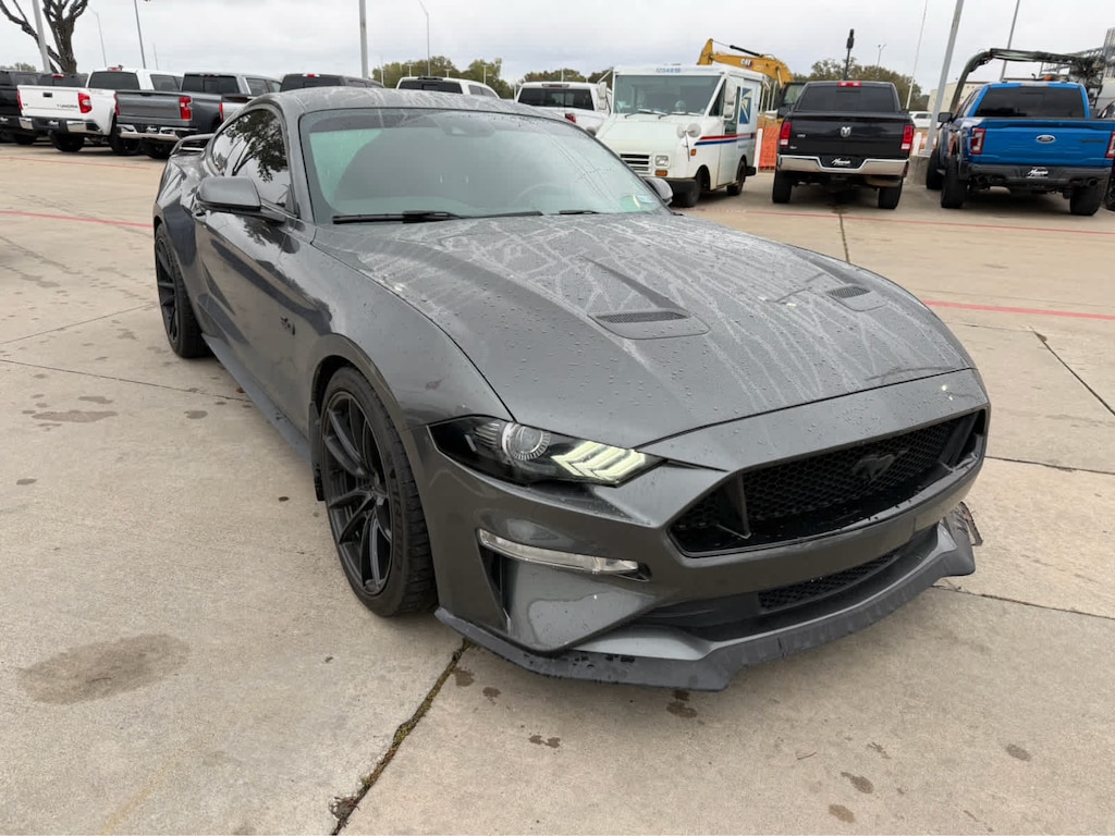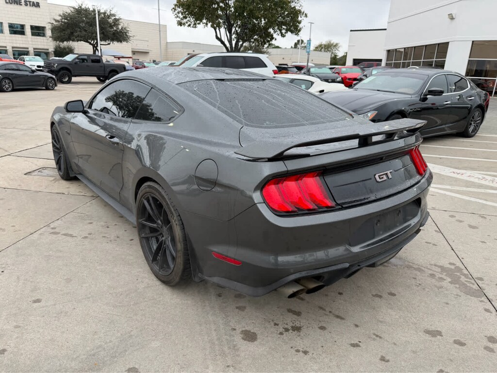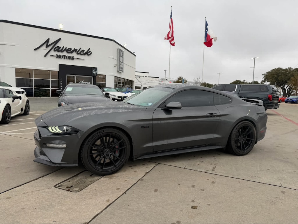 GT PERFORMANCE PACKAGE Brembo 6-piston front brake calipers, K-brace, performance rear wing, silver painted strut-tower brace, unique chassis tuning, unique electronic power assisted steering, unique anti-lock brakes and upsized rear sway bar, Engine Spun Aluminum Instrument Panel, HD Front Springs, 3.73 TORSEN Differential Ltd Slip Rear Axle Ratio, Unique Stability Control, Wheels: 19 x 9 Fr & 19 x 9.5 Rr Ebony Black, Painted aluminum, Larger Radiator, Larger Brake Rotors, Tires: 255/40R19 Fr & 275/40R19 Rr Summer-Only, Designed to optimize driving dynamics and provide superior performance on wet and dry roads, High performance summer tires wear faster than non-performance tires, Ford does not recommend using summer tires when temperatures drop to approximately 45 deg F (7 deg C) or, EQUIPMENT GROUP 401A Blind Spot Info System w/Cross-Traffic Alert, Premium Plus Package, Heated Steering Wheel, Premier Trim w/Color Accent Group, hand stitched center console lid, wrapped knee bolsters w/accent stitch, shifter boot, unique color-accented door trim and wrapped center console w/accent stitch, Premium Floor Mats w/Accent Stitch, Linked Graphite Aluminum Instrument Panel, FordPass Connect, Wi-Fi hotspot connects up to 10 devices w/trial subscription of 3 months or 3 gigabytes, whichever comes first, wireless service plan required after trial subscription ends, remote start, lock and unlock vehicle, schedule specific times to remotely start vehicle, ability to locate parked vehicle and check vehicle status w/1 year service from the vehicle sale date as recorded by the dealer, MAGNERIDE DAMPING SYSTEM, TRANSMISSION: 10-SPEED AUTOMATIC W/SELECTSHIFT steering wheel paddle shifters, Leather-Wrapped Shift Knob, Remote Start System, 3.15 Limited Slip Rear Axle Ratio, FORD SAFE & SMART PACKAGE Automatic High Beam, Rain-Sensing Windshield Wipers, Adaptive Cruise Control, Pre-Collision Assist w/Pedestrian Detection, automatic emergency braking and forward collision warning w/brake support, Lane-Keeping Alert, RADIO: B&O SOUND SYSTEM BY BANG & OLUFSEN CD player, 12-speakers and subwoofer in-trunk, HD Radio, ENHANCED SECURITY PACKAGE electronic-locking center console and electronic steering column lock, Wheel Locking Kit, Active Anti-Theft System, ENGINE: 5.0L TI-VCT V8 (STD).