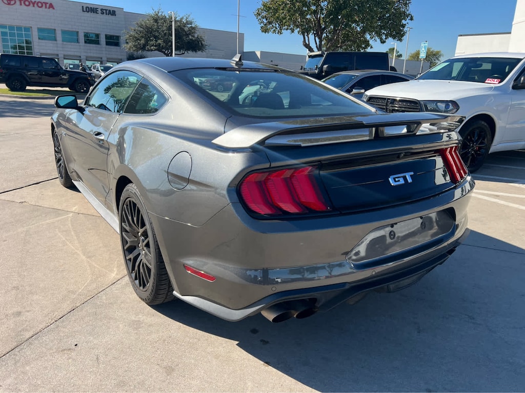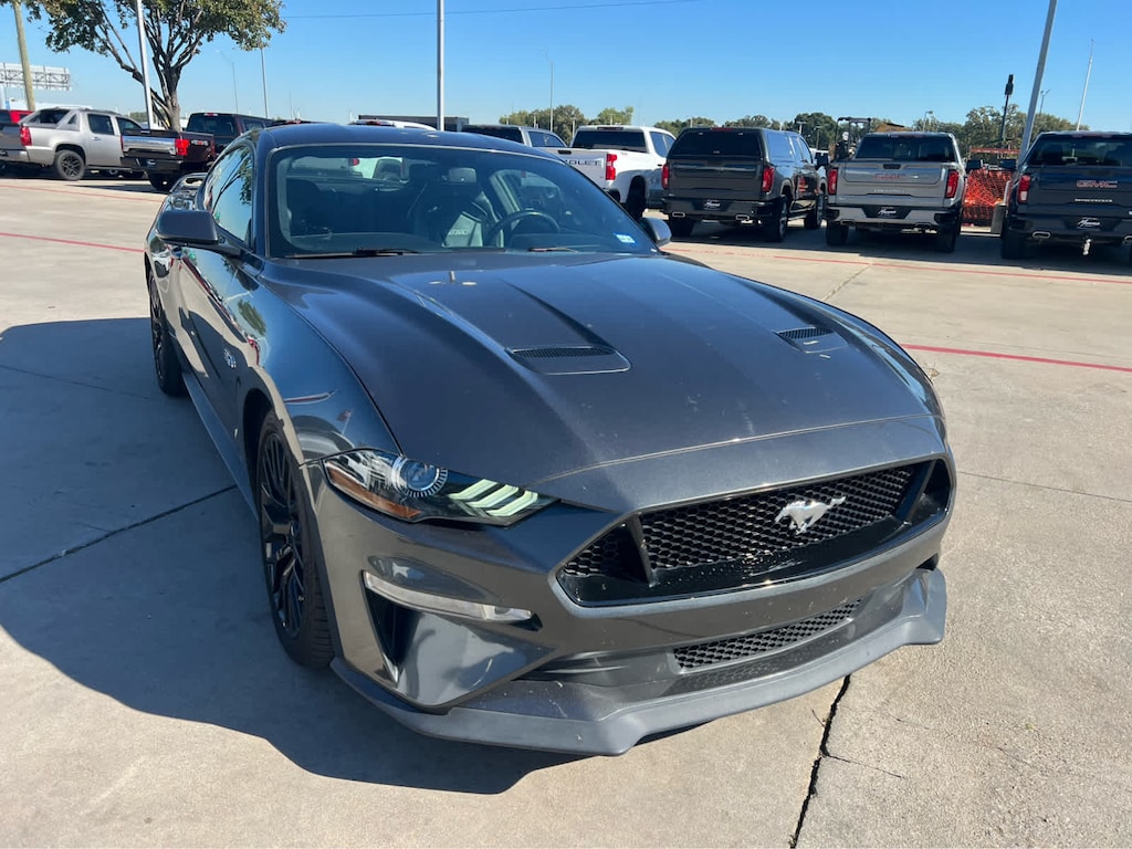 GT PERFORMANCE PACKAGE Brembo 6-piston front brake calipers, K-brace, performance rear wing, silver painted strut-tower brace, unique chassis tuning, unique electronic power assisted steering, unique anti-lock brakes and upsized rear sway bar, Engine Spun Aluminum Instrument Panel, Heavy-Duty Front Springs, 3.73 TORSEN Limited-Slip Rear Axle Ratio, Unique Stability Control, Wheels: 19 x 9 Fr & 19 x 9.5 Rr Ebony Black, Painted aluminum, Larger Radiator, Larger Brake Rotors, Tires: 255/40R19 Fr & 275/40R19 Rr Summer-Only, Designed to optimize driving dynamics and provide superior performance on wet and dry roads, High performance summer tires wear faster than non-performance tires, Ford does not recommend using summer tires when temperatures drop to approximately 45 deg F (7 deg C) or, EQUIPMENT GROUP 401A Blind Spot Info System w/Cross-Traffic Alert, Premium Plus Package, Heated Steering Wheel, Premier Trim w/Color Accent Group, accent stitched center console lid, wrapped knee bolsters w/accent stitch, shifter boot, unique color-accented door trim and wrapped center console w/accent stitch, Premium Floor Mats w/Accent Stitch, Linked Graphite Aluminum Instrument Panel, 12 LCD Digital Instrument Cluster w/MyColor, Voice-Activated Touch-Screen Navigation System, pinch-to-zoom capability, SiriusXM Traffic and Travel Link w/a, SiriusXM audio and data services each require a subscription sold separately, or as a package, by SiriusXM Radio Inc, If you decide to continue service after your trial, the subscription plan you choose will automatically, MAGNERIDE DAMPING SYSTEM, TRANSMISSION: 10-SPEED AUTOMATIC W/SELECTSHIFT steering wheel paddle shifters, Leather-Wrapped Shift Knob, Remote Start System, 3.15 Limited Slip Rear Axle Ratio, ENGINE: 5.0L TI-VCT V8 port fueled direct injection (PFDI) (STD).