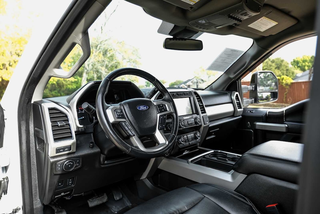 ENGINE: 6.7L 4V OHV POWER STROKE V8 TURBO DIESEL B20 manual push-button engine-exhaust braking and intelligent oil-life monitor, 240 Amp Alternator, 34 Gallon Fuel Tank, 3.31 Axle Ratio, Dual 78-AH 750 CCA Batteries, LARIAT BLACK APPEARANCE PACKAGE ebony black fender vent surround, Black Out Surrounds LED Only Headlamps, Rear Wheel Well Liners (Pre-Installed), Ebony Black Painted Front Grille Bars, Ebony Black Painted Mirror Caps, Tough Bed Spray-In Bedliner, tailgate-guard, black box bed tie-down hooks and black bed attachment bolts, Body-Color Front & Rear Bumpers, Wheels: 20 High-Gloss Black Premium Painted Alum, Tires: LT275/65Rx20E OWL Automatic Transmission (4), Spare may not be the same as road tire, 6 Ebony Black Angular Running Boards, LARIAT ULTIMATE PACKAGE Power Heated/Ventilated Driver Seat w/Memory, PowerScope Trailer Tow Mirrors w/Memory, EASY ENTRY®/Exit Memory Drivers Seat Feature, Tailgate Step & Handle, LED Box Lighting, LED Center High-Mounted Stop Lamp (CHMSL), Intelligent Access w/Push-Button Start, Power Heated/Ventilated Passenger Seat, Voice-Activated Navigation, HD and SiriusXM Traffic and Travel Link, Note: SiriusXM Traffic and Travel Link includes a, Services are not available in Alaska and Hawaii, SiriusXM audio and data services each require a subscription sold separately, or as a package, by SiriusXM Radio Inc, If you decide to continue service after your trial, the subscription plan you choose will automatically renew thereafter and you will be charged according to your, PRO TRAILER BACKUP ASSIST Ultimate Trailer Tow Camera System, rear view camera, 360 degree camera system, rear CHMSL camera, trailer reverse guidance and LED center high-mounted stop lamp, Lane-Keeping Alert, ELECTRONIC-LOCKING W/3.31 AXLE RATIO, HEATED REAR SEATS, UNIVERSAL GARAGE DOOR OPENER (UGDO), TRANSMISSION: TORQSHIFT 10-SPEED AUTOMATIC SelectShift and selectable drive modes: normal, tow/haul, eco, deep sand/snow and slippery.