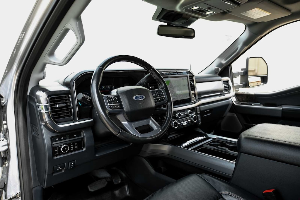 LARIAT ULTIMATE PACKAGE Ford Co-Pilot 360 2.0, rear view camera, reverse brake assist and reverse sensing system, Lane-Keeping System, lane-keeping alert, lane-keeping aid and driver alert, Pre-Collision Assist, Automatic Emergency Braking (AEB), pedestrian detection, forward collision warning, dynamic brake support and intersection assist, Post-Collision Braking, Automatic High Beam, BLIS w/Cross-Traffic Alert, trailer coverage, Upfitter Switches (6), Located in overhead console, 4-Way Adjustable Headrests, Tow Technology Package, Lane Keeping Assist, Pro Trailer Backup Assist, trailer reverse guidance, Intelligent Adaptive Cruise Control w/Stop-and-Go, speed sign recognition, Pro Trailer Hitch Assist, Wireless Charging Pad, Front Sensing System, Tailgate Step & Handle, Head-Up Display, ENGINE: 6.7L POWER STROKE V8 TURBO DIESEL B20 High output, manual push-button engine-exhaust braking, Operator Commanded Regeneration (OCR) and intelligent oil-life monitor, TWIN PANEL POWER MOONROOF map lights and moonroof switches, TRANSMISSION: TORQSHIFT 10-SPEED AUTOMATIC SelectShift and selectable drive modes: normal, eco, slippery roads, tow/haul and off-road (STD).