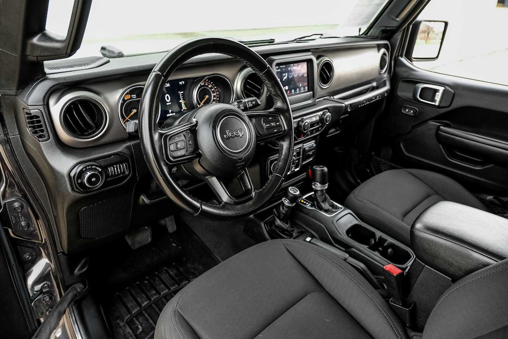 QUICK ORDER PACKAGE 22S SPORT S Engine: 2.0L I4 DOHC DI Turbo w/ESS, Transmission: 8-Speed Automatic (850RE), Front 1-Touch Down Power Windows, Speed Sensitive Power Locks, Power Heated Mirrors, Automatic Headlamps, Leather Wrapped Steering Wheel, Security Alarm, Remote Keyless Entry, Sun Visors w/Illuminated Vanity Mirrors, TRANSMISSION: 8-SPEED AUTOMATIC (850RE) TIP Start, Dana M200 Rear Axle, Hill Descent Control, BLACK 3-PIECE HARD TOP Freedom Panel Storage Bag, Rear Window Defroster, Rear Window Wiper/Washer, No Soft Top, ALPINE PREMIUM AUDIO SYSTEM 220 Amp Alternator, TECHNOLOGY GROUP Google Android Auto®, Cluster 7.0 TFT Color Display, SiriusXM Satellite Radio, USB Host Flip, Integrated Center Stack Radio, 7.0 Touchscreen Display, Air Conditioning w/Auto Temp Control, Radio: Uconnect 4 w/7 Display, Apple CarPlay®, Air Filtering, GPS Antenna Input, SAFETY GROUP ParkSense Rear Park Assist System, Blind Spot & Cross Path Detection, LED Taillamps, Injection Molded Black Rear Bumper, LED HEADLAMP & FOG LAMP GROUP Front LED Fog Lamps, LED Reflector Headlamps, CONVENIENCE GROUP Universal Garage Door Opener, ENGINE: 2.0L I4 DOHC DI TURBO W/ESS.