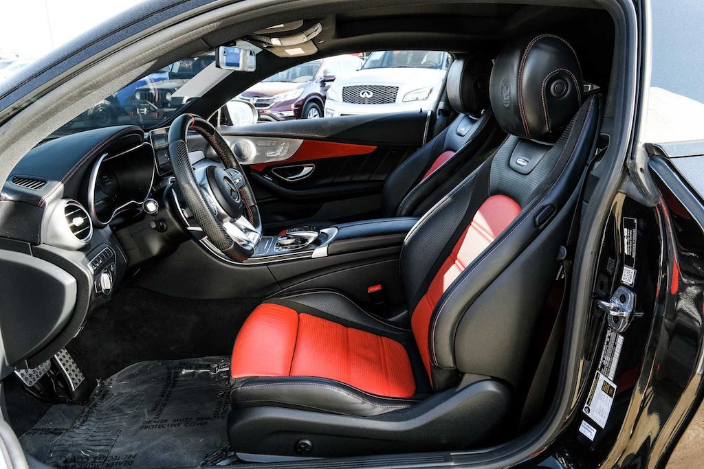 Leather Seats, Sunroof, Panoramic Roof, Heated Driver Seat, Premium Sound System. Non-Smoker vehicle Mercedes-Benz AMG® C 63 S with Obsidian Black Metallic exterior and Red Pepper/Black interior features a 8 Cylinder Engine with 503 HP at 5500 RPM*.