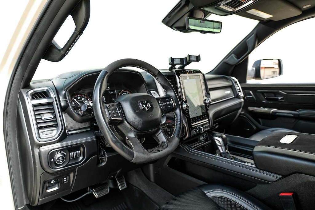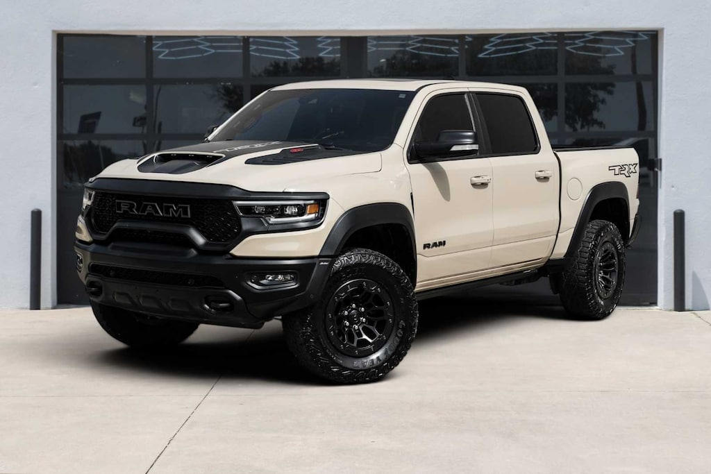 Navigation, Satellite Radio, iPod/MP3 Input, Bluetooth®, Trailer Hitch Non-Smoker vehicle Ram TRX with Mojave Sand Clearcoat exterior and Black interior features a 8 Cylinder Engine with 702 HP at 6100 RPM*.